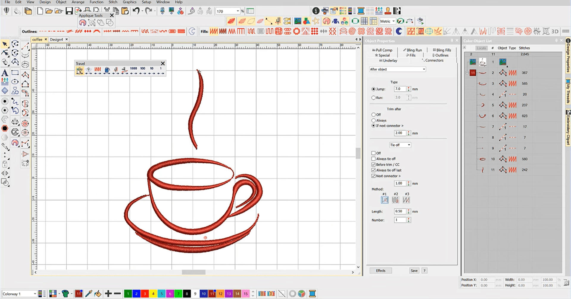 Built-in quality control tools help you identify and resolve potential production issues before sending designs to your embroidery machine. The software analyzes stitch density, identifies problematic areas, and suggests optimizations to improve production efficiency and final quality.